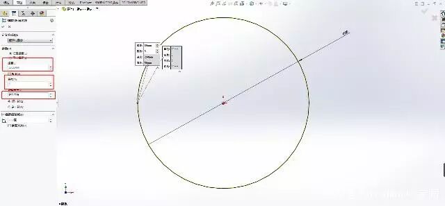 1、现在准备建立路径草图:先建立一个直径50mm的圆,标注尺寸,如图所示