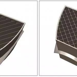接下来我们可能就有点无从下手了,对于过滤网的网格形状我们可以使用线性阵列特征命令,可是在一个曲面上做线性阵列而且每条过滤网支架都是曲线形的,难度上天了。