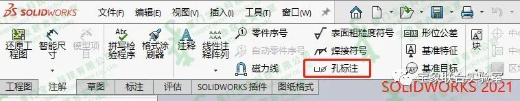 在出详图模式中,可以为使用异型孔向导、高级孔、孔、拉伸切除、扫描切除和旋转切除特征的孔添加和编辑孔标注。
