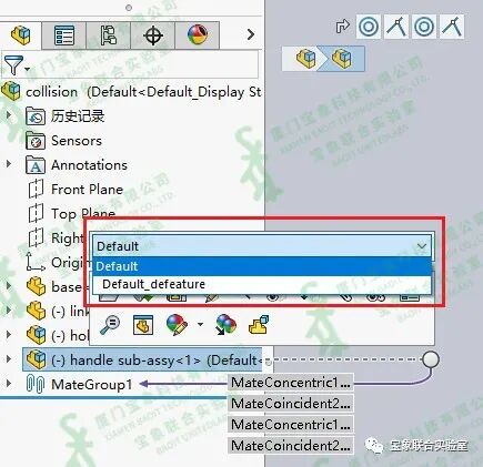 对于以轻化模式打开的装配体,单击设计树中以展开项目时,顶层零部件和子装配体会自动还原,我们能够访问完全解析的子装配体或零件。