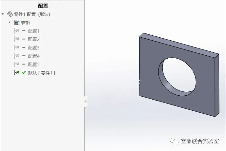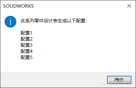 如下图所示,我们创建了5个配置,创建成功后,双击SOLIDWORKS试图区,退出Excel