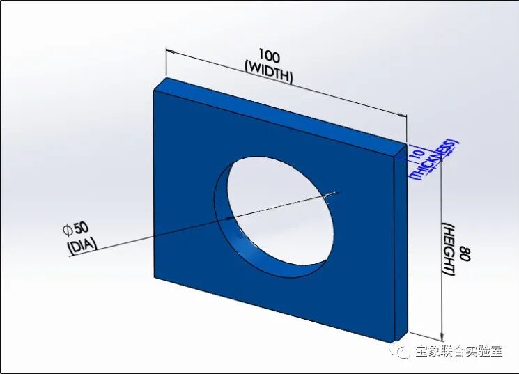 我们先创建出下图所示的零件,对全部尺寸进行命名,这样可以方便识别各个尺寸所代表的意义。
