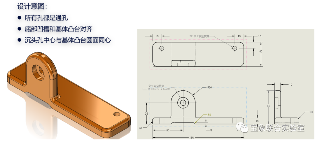 如图所示零件,我相信最佳草图大家都会选择了,但是创建此特征,3个视图都可以选择,所以我们也要考虑到接下来要创建的特征,再去选择最合适的平面去创建最佳草图。
